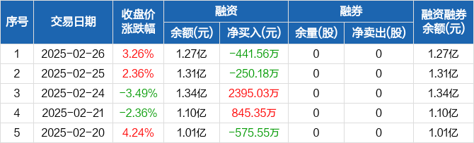 襄阳轴承:融资净偿还441.56万元,融资余额1.27亿元(02-26)