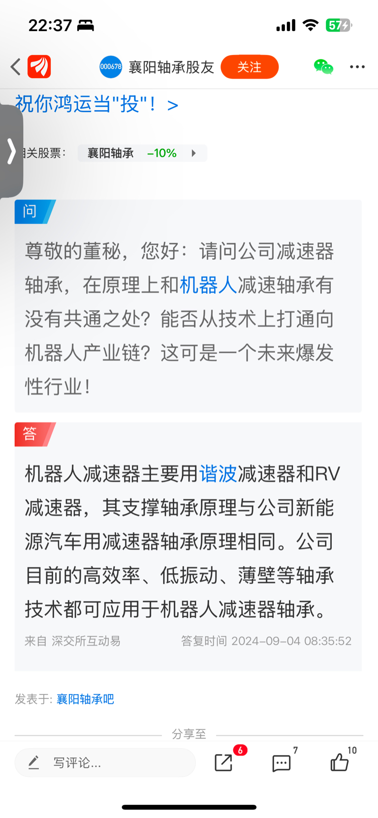 $襄阳轴承(SZ000678)$ 董秘是这样回答的,看大家怎么理解了?