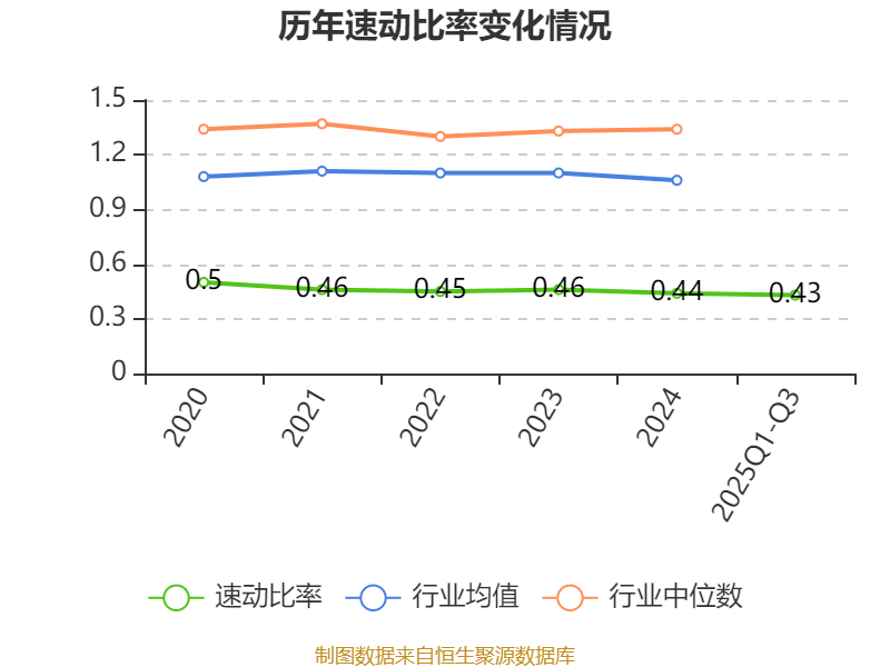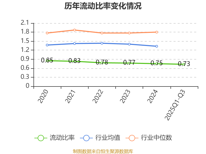 2025年前三季度,公司流动比率为0.73,速动比率为0.43。