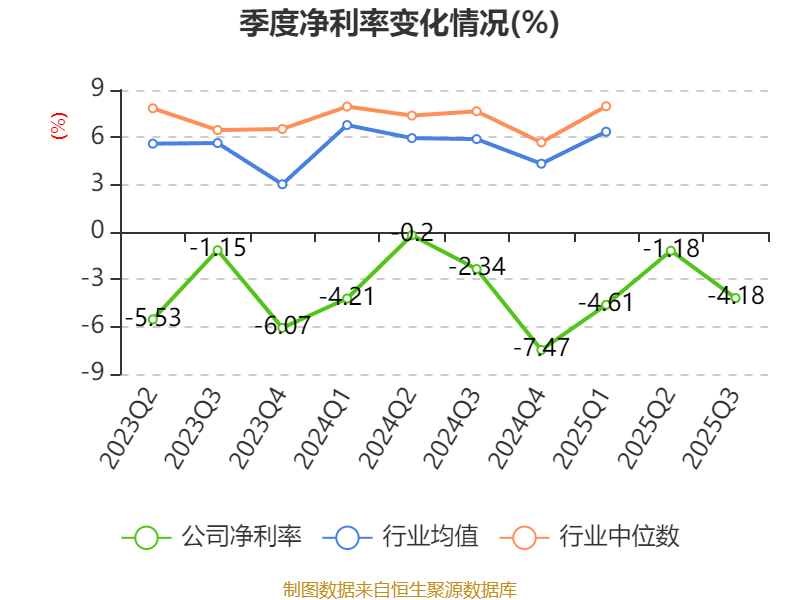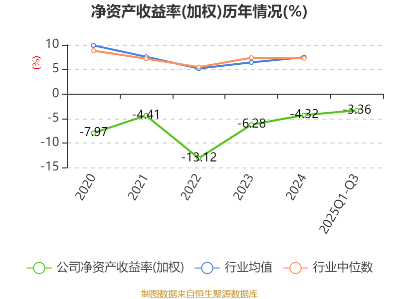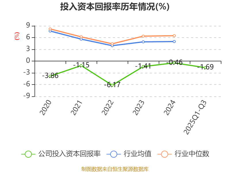 盈利能力方面, 2025年前三季度公司加权平均净资产收益率为-3.36%,同比下降1.01个百分点。公司2025年前三季度投入资本回报率为-1.69%,较上年同期下降1.04个百分点。