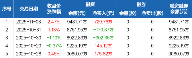 襄阳轴承:融资净买入729.76万元,融资余额9481.71万元(11-03)