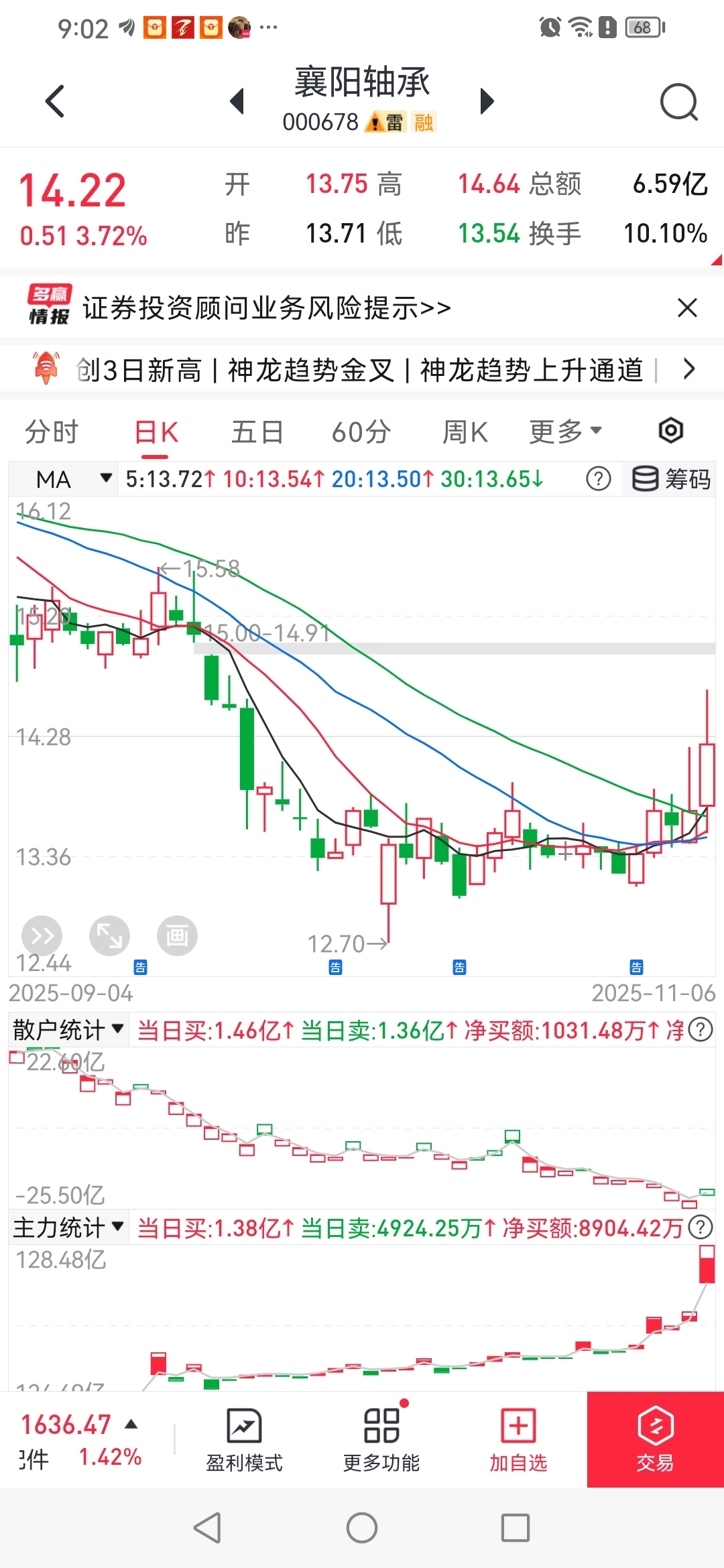 $襄阳轴承(SZ000678)$ 义务宣传,你快该醒悟了,全部是管理层的问题,没有人解决散户T+0,你咋跟买跟卖嘞,散户做倒T,你买,他会跟买的呀,他一买这个量化出货了啊?多头再次拉升,该量化吃不住货了啊?散户没有T+0,没有二次抛货,所以那专用量化不能二次吃货!