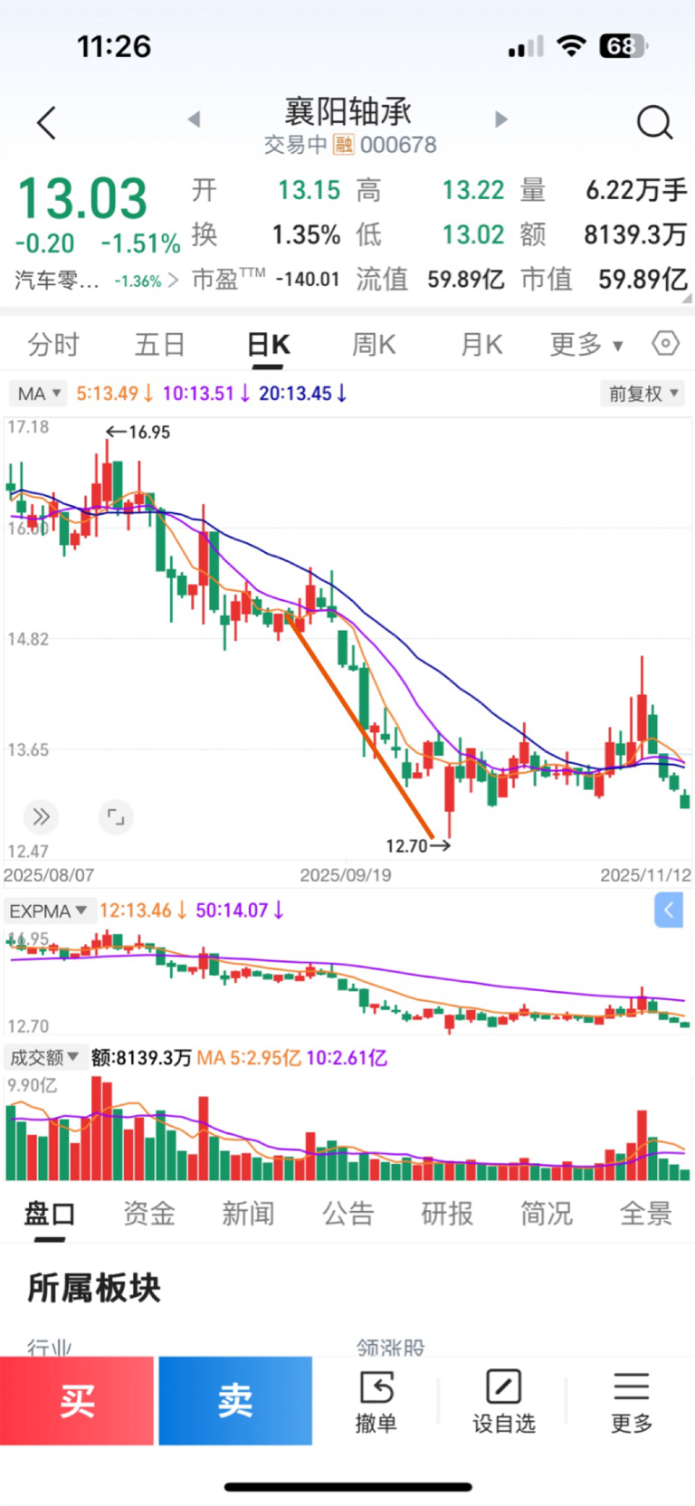 $襄阳轴承(SZ000678)$ 上次诱多连续跌9天。