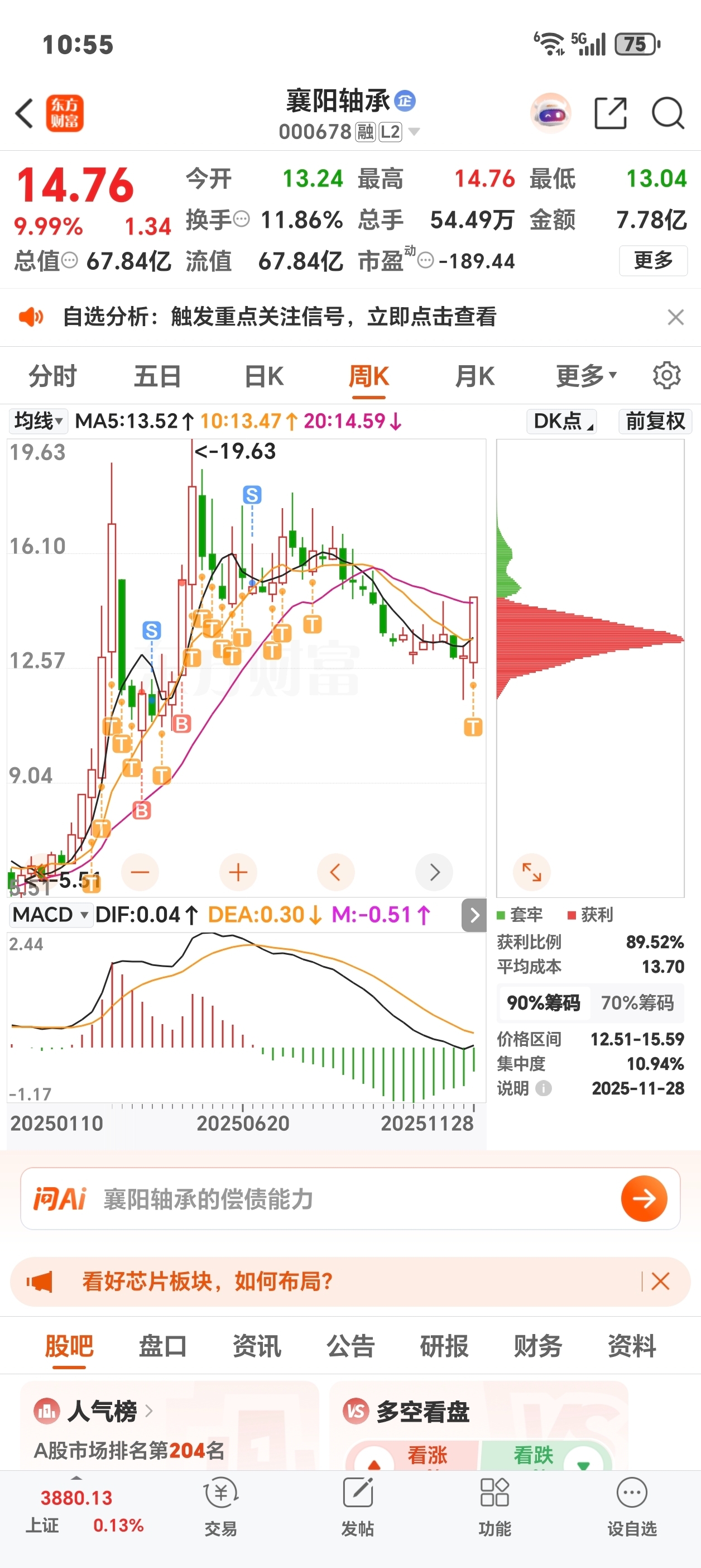 板上出了,这票基本上第二天没溢价周一低开再接回来不香嘛?