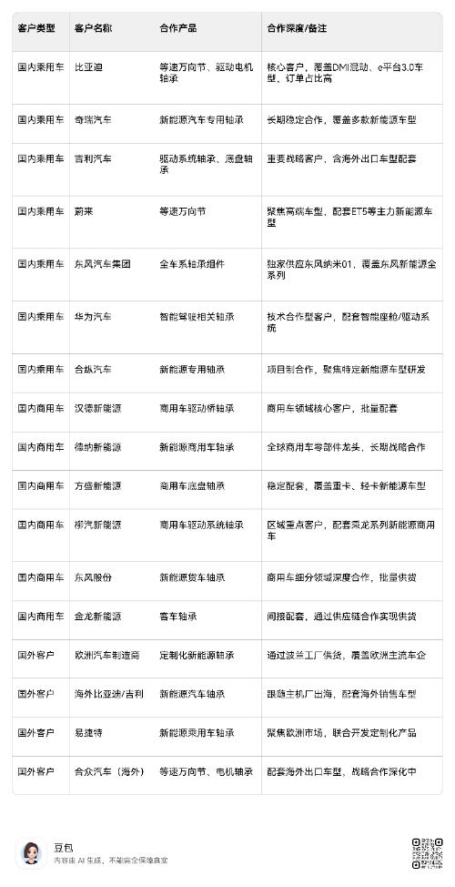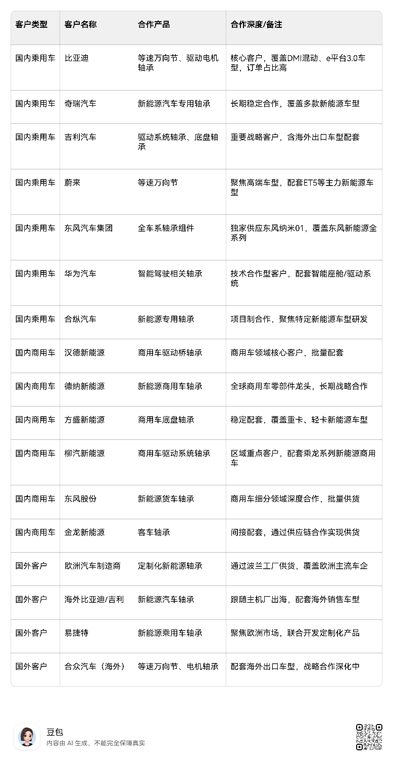它凭借新能源汽车减速器轴承的技术积累实现跨领域迁移,不仅能生产谐波减速器轴承与RV减速器轴承,其RV减速器轴承精度还达P4级,已进入埃斯顿等头部机器人企业供应链。2024年其机器人轴承业务收入增长120%,二期产能投产后年产能将达80万套,同时公司还和新松等机器人企业合作开发减速器轴承,深度切入机器人核心零部件赛道。