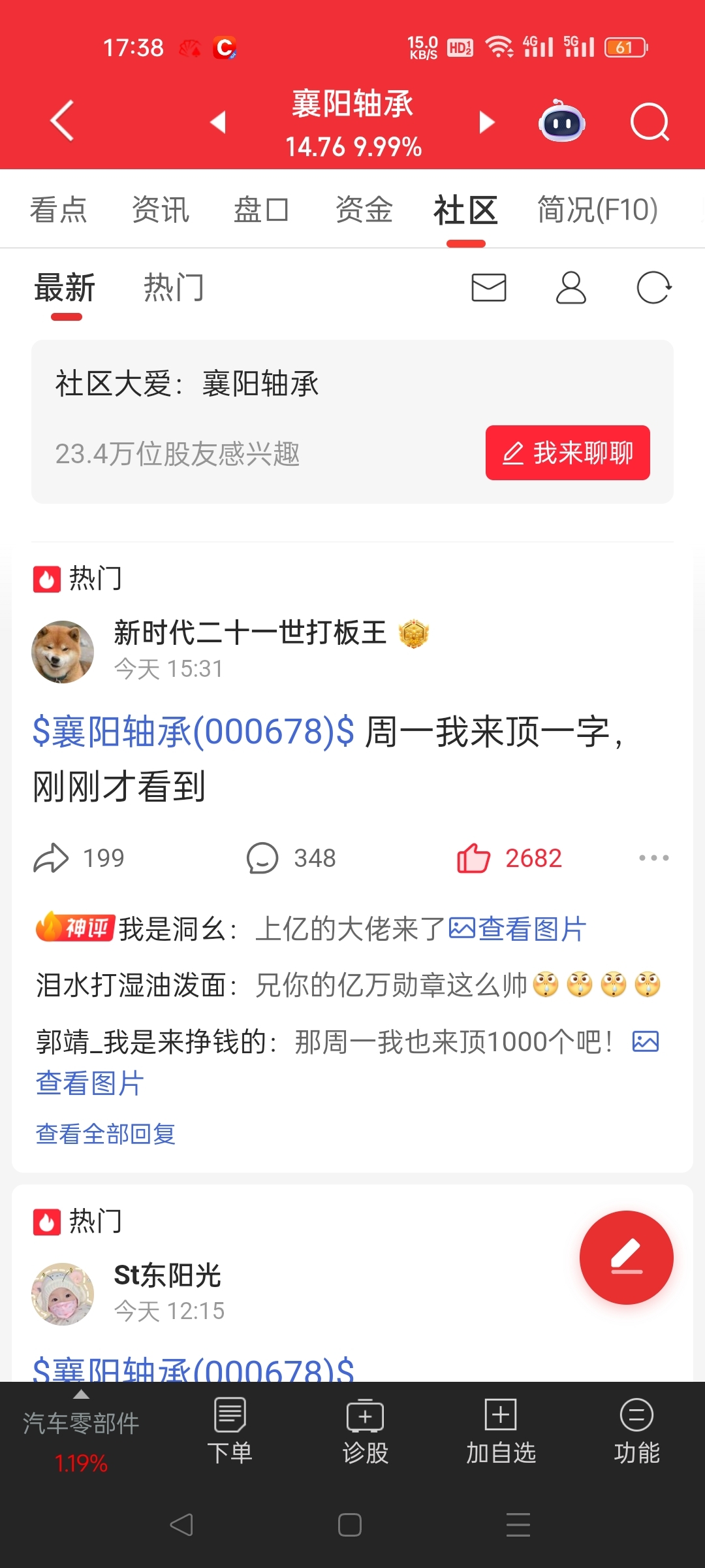 $襄阳轴承(SZ000678)$ 同花顺那边上亿大佬都出来说周一顶一字板了