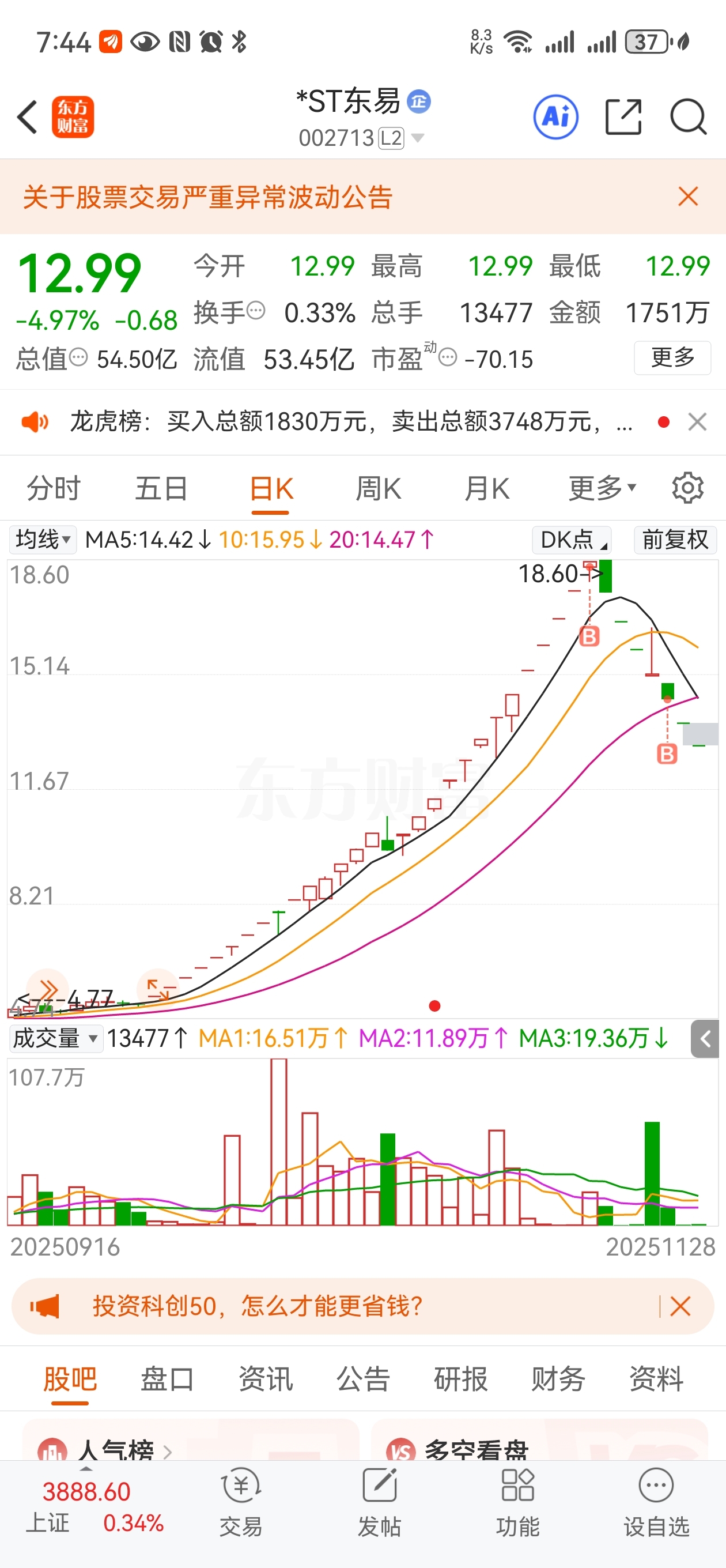 $襄阳轴承(SZ000678)$ $*ST东易(SZ002713)$ ,这里的主力好有爱,我家主力把我当小日子往死里整,吃了7个跌停,还出不来。