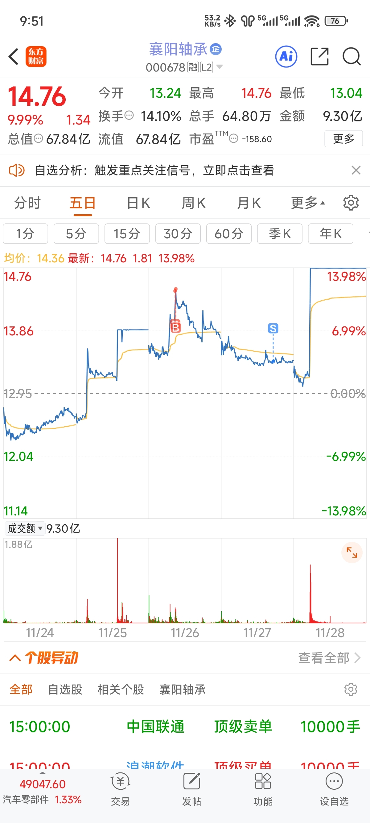 $襄阳轴承(SZ000678)$ 我前天最高点买入,昨天低点卖出,主力仁义!我也足够仁义!早就给主力做足了贡献,感恩的话不要给我讲了,我的无私奉献,大家不用感谢我,我是当代活雷封!!!