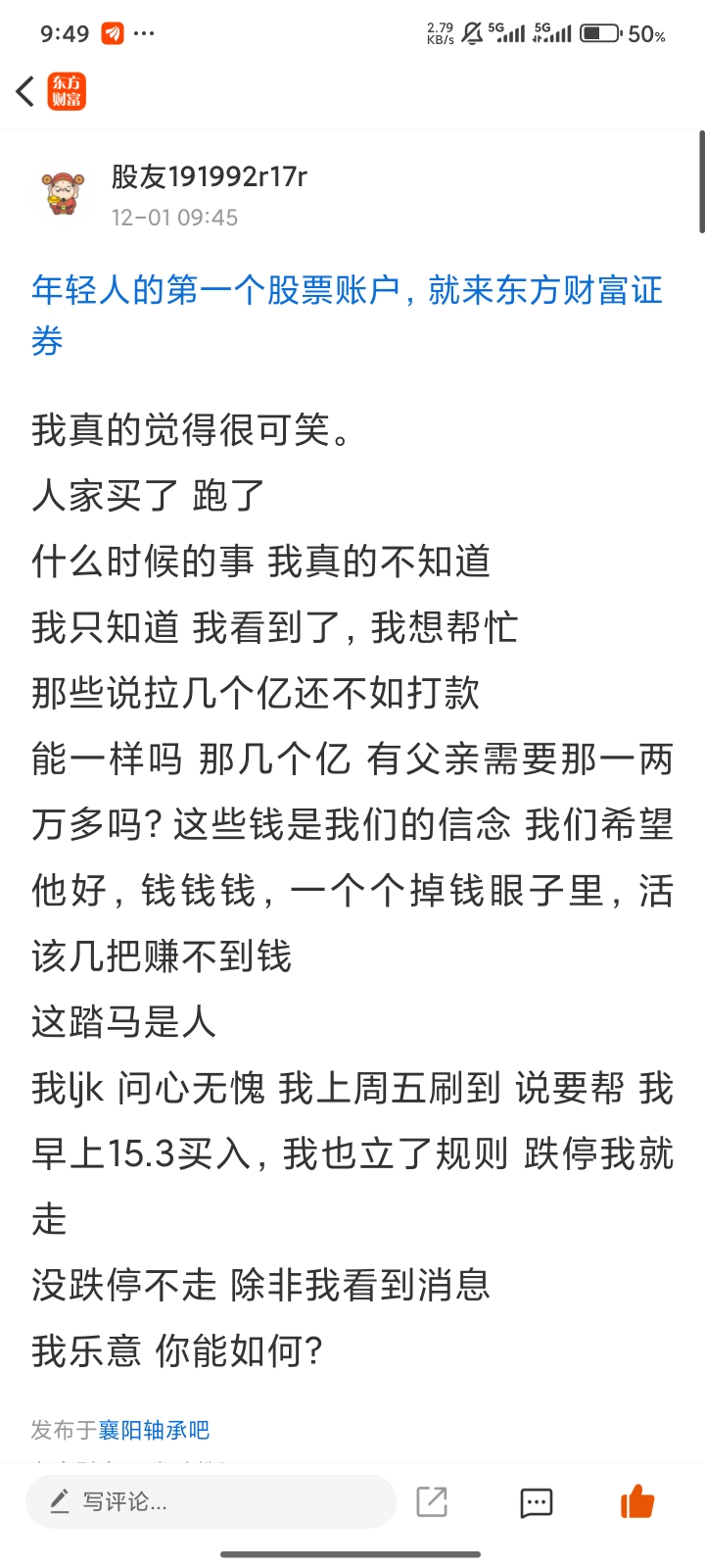 温馨提示: 1.根据《证券法》规定,禁止编造、传播虚假信息或者误导性信息,扰乱证券市场;2.用户在本社区发表的所有资料、言论等仅代表个人观点,与本网站立场无关,不对您构成任何投资建议。用户应基于自己的独立判断,自行决定证券投资并承担相应风险。《东方财富社区管理规定》