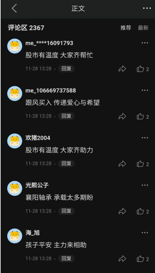 11月28日中午部分投资者对襄阳轴承涨停的反应