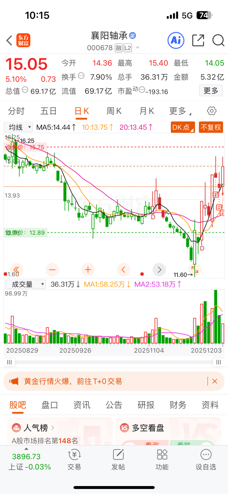 $襄阳轴承(SZ000678)$ 还好加仓了