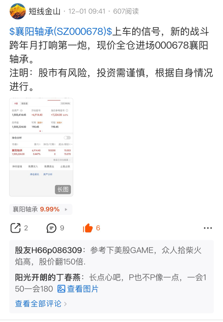$襄阳轴承(SZ000678)$ 有图有真相,拒绝一切马后炮行为,跟好金山的盘中节奏,前期失去的东西很快就能回来,襄阳轴承没有辜负大家的期待和支持了,只要把心态调整好再出发一切都会顺利,继续加油,一起期待金山精彩的跨年狂欢翻倍月吧。