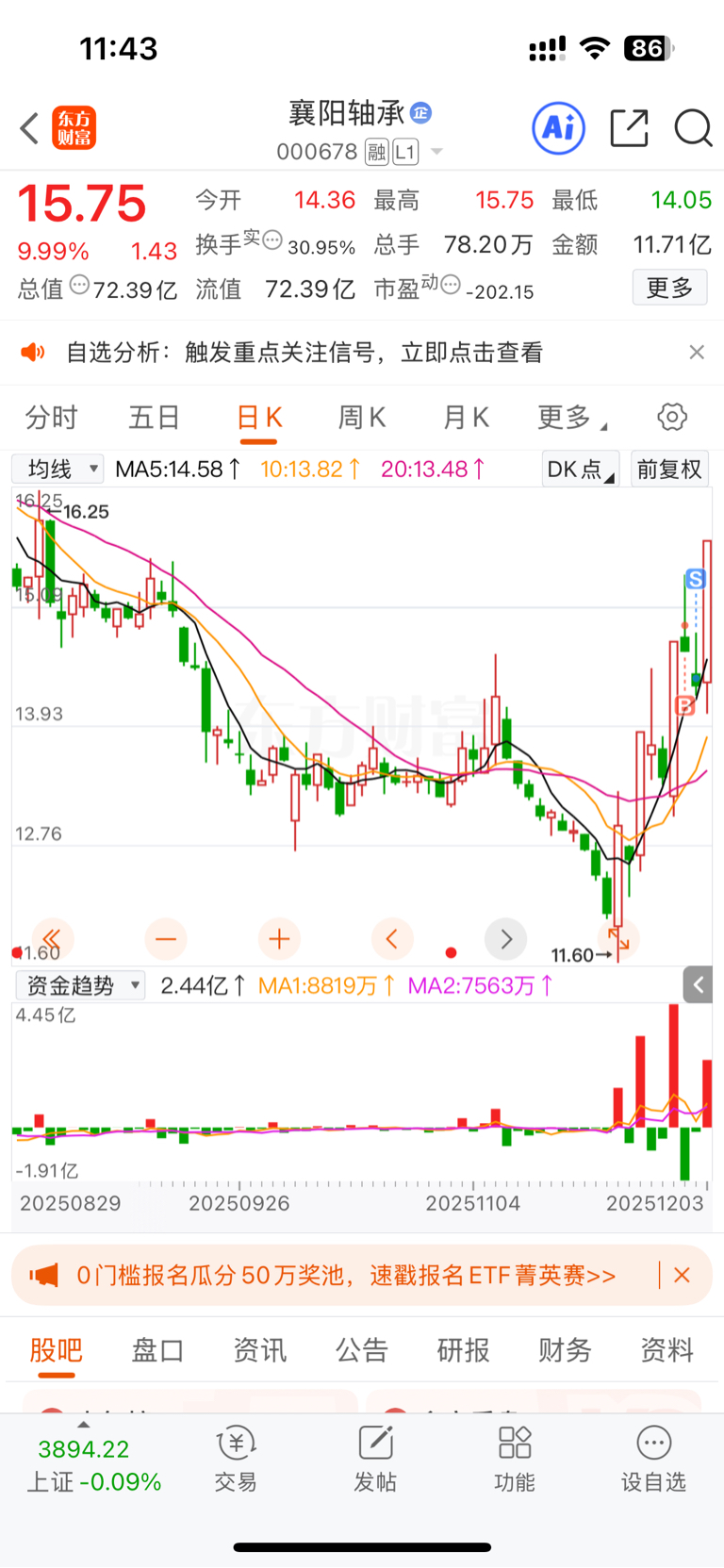 $襄阳轴承(SZ000678)$ 有没有一样操作的朋友?