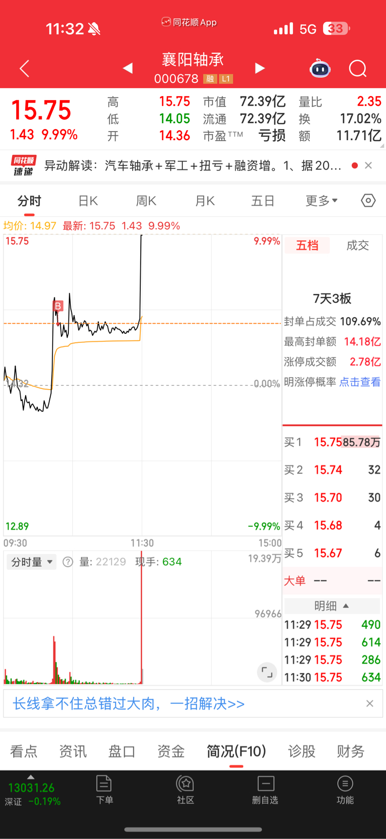 $襄阳轴承(SZ000678)$ 次次板后双阴洗盘加突然缩倍量,还看不懂吗。昨天14.22不破,今天高开早上在12.1的大阴顶就14.81洗了一早上,感谢主力,拿不住的韭菜就破防吧