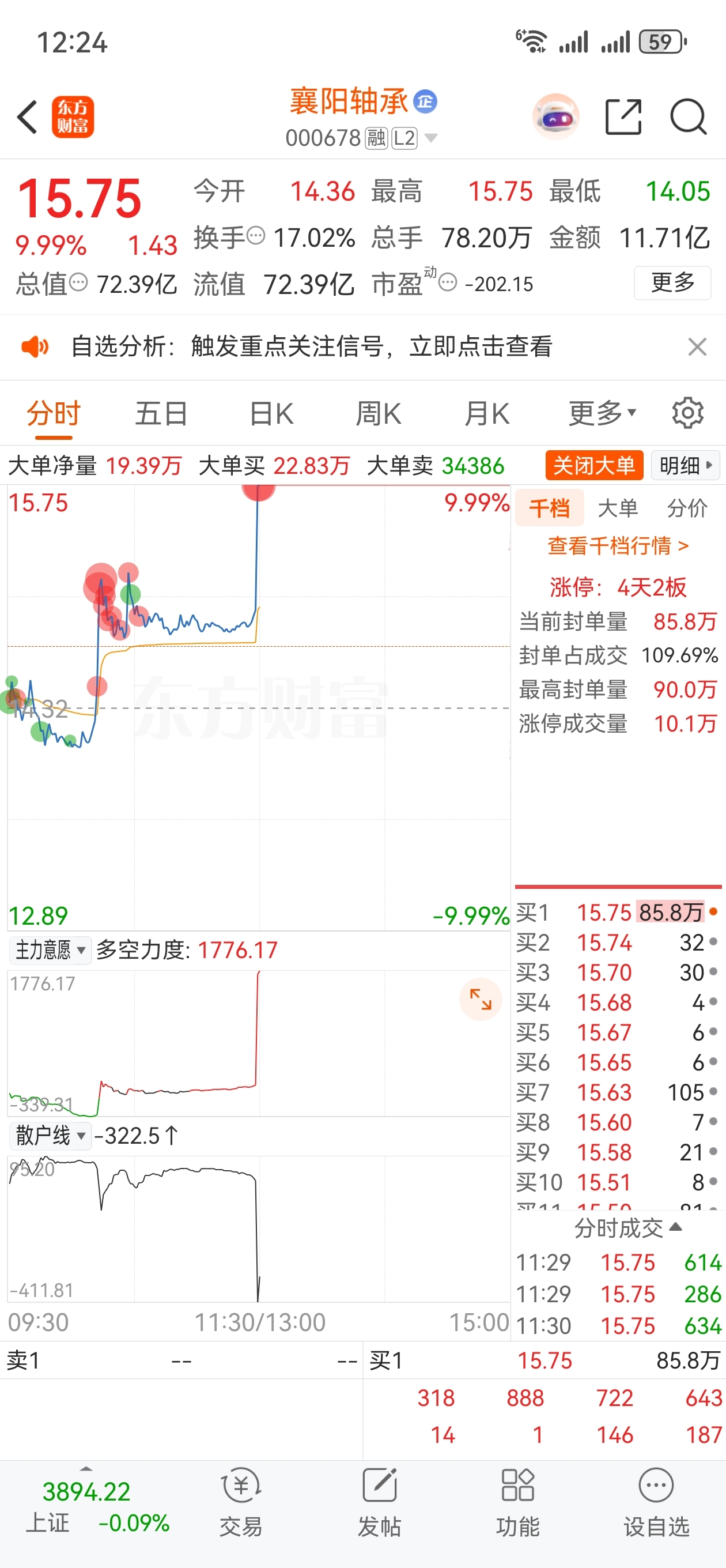 $襄阳轴承(SZ000678)$ 感谢主力希望继续连板