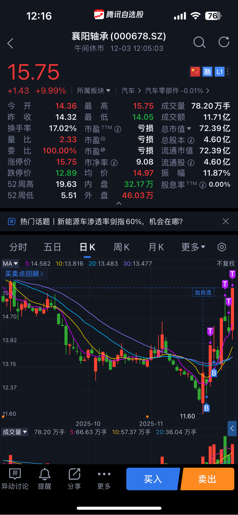 $襄阳轴承(SZ000678)$ 善庄、我必跟随!