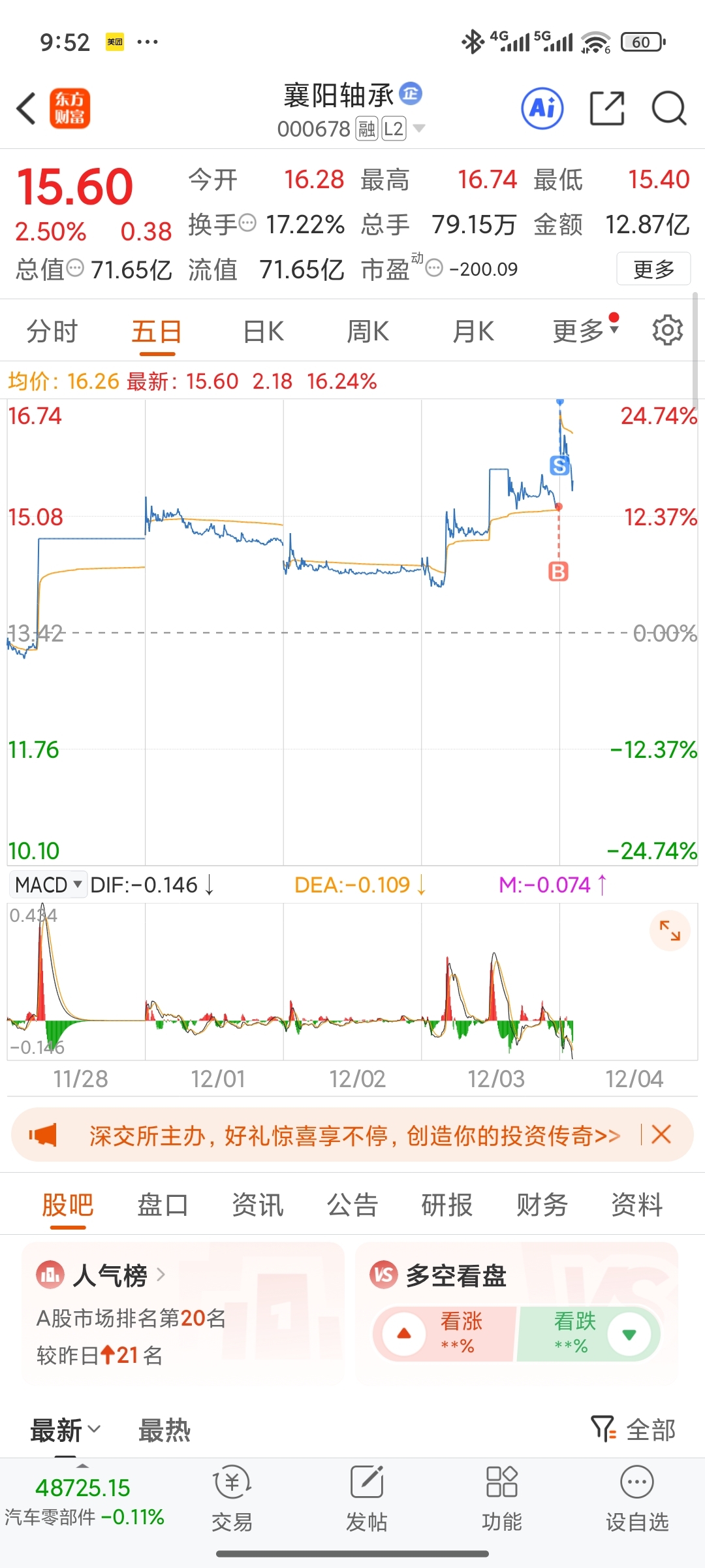 $襄阳轴承(SZ000678)$ 还好早上跑得快,一日游爽歪歪