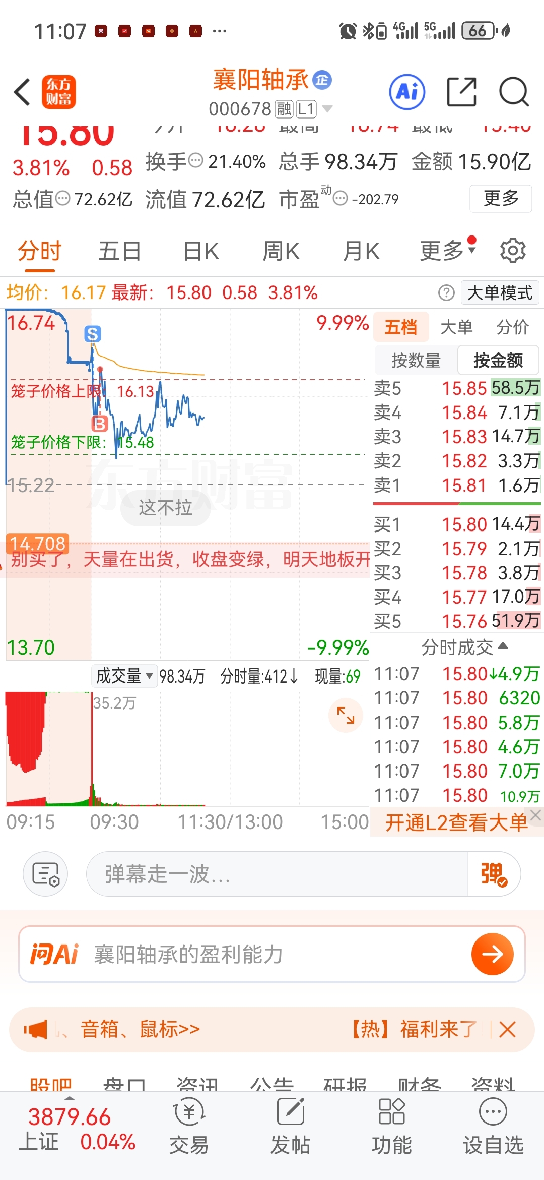 $襄阳轴承(SZ000678)$ 涨停板没跑 搞出这种神级操作 !