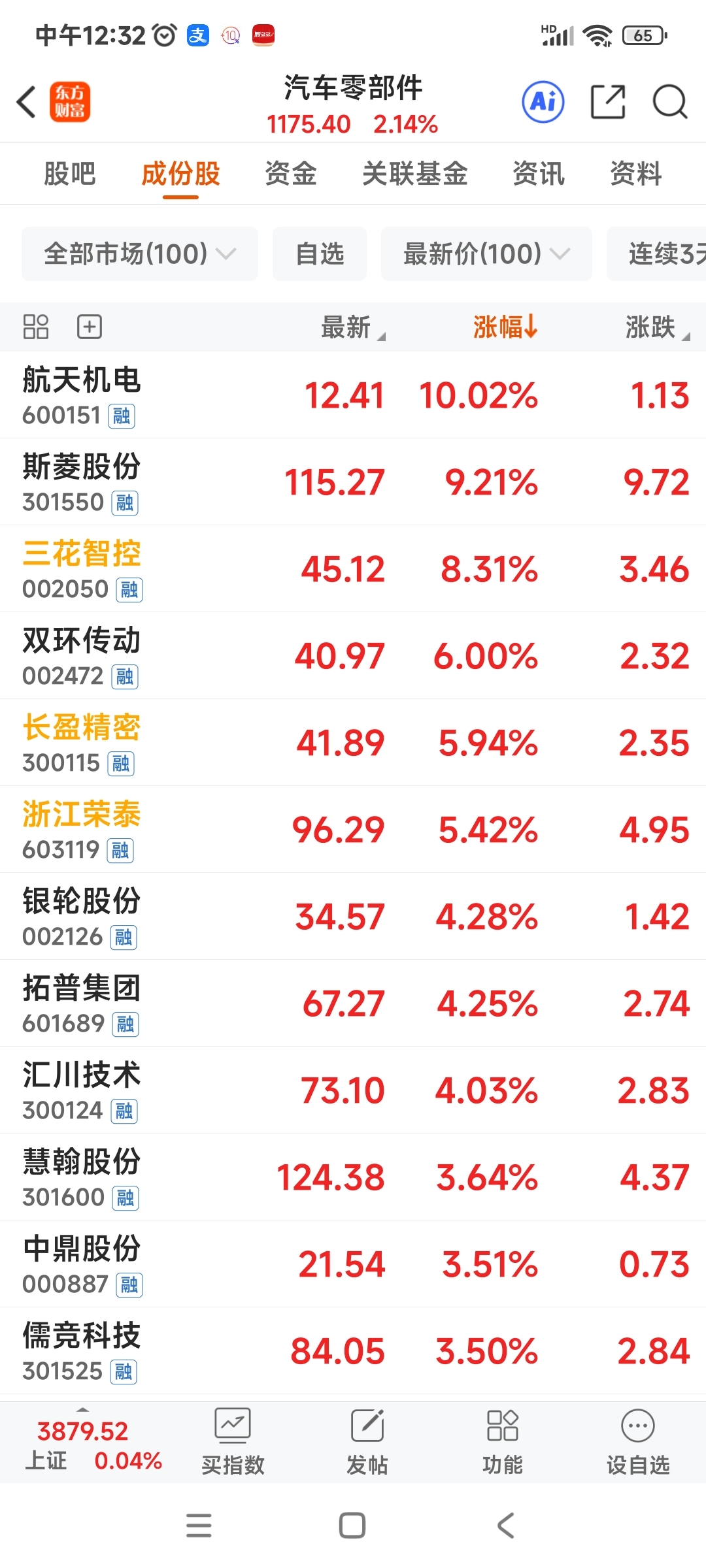 今天大A资金净买入排行榜一汽车零部件板块,可惜无论股价资金绿7000万涨幅你都排