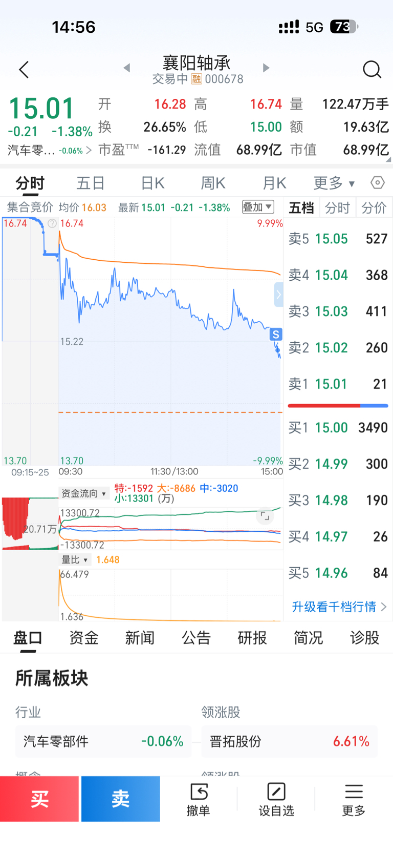 $襄阳轴承(SZ000678)$ 服气,恶庄票,15个点,拉黑了,