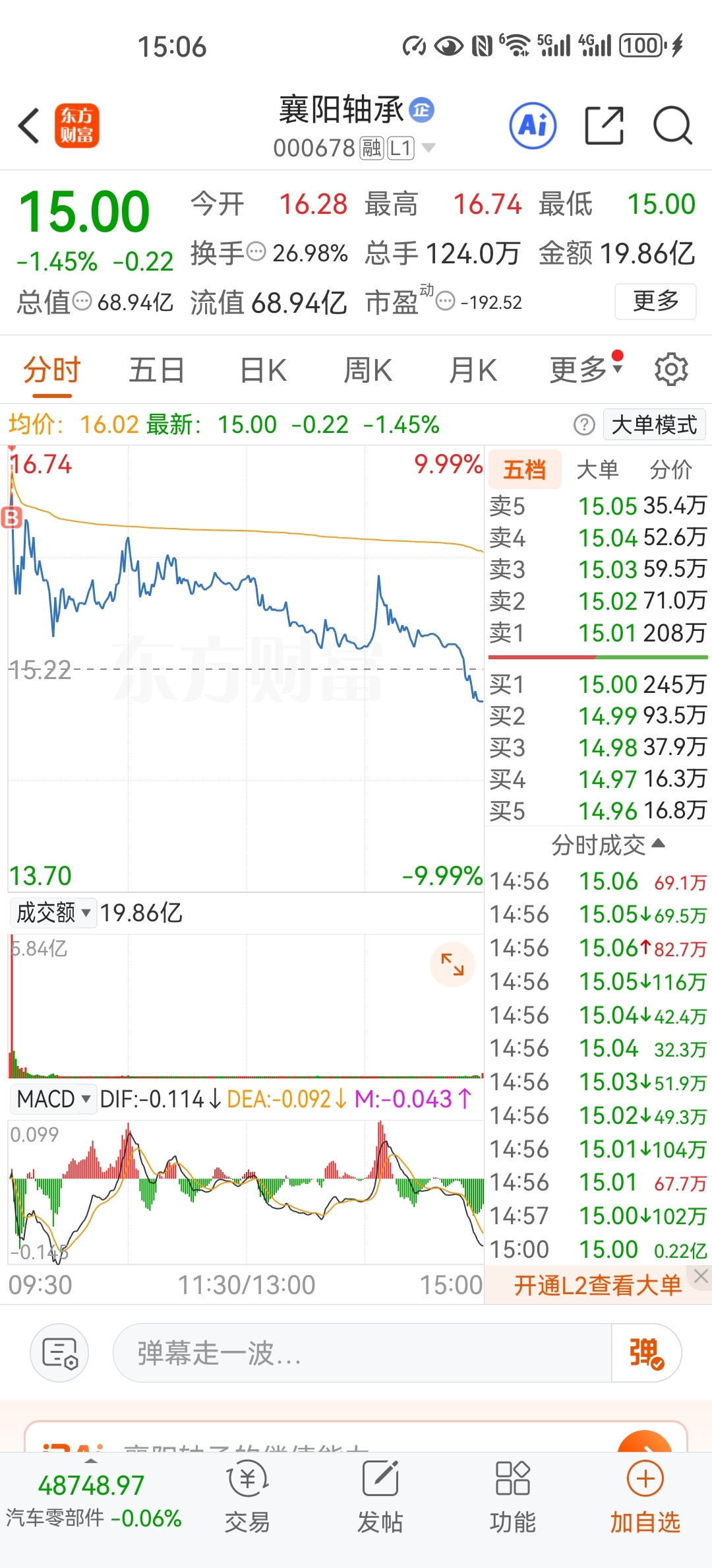 $襄阳轴承(SZ000678)$ 涨停买的明天涨停都回不了本