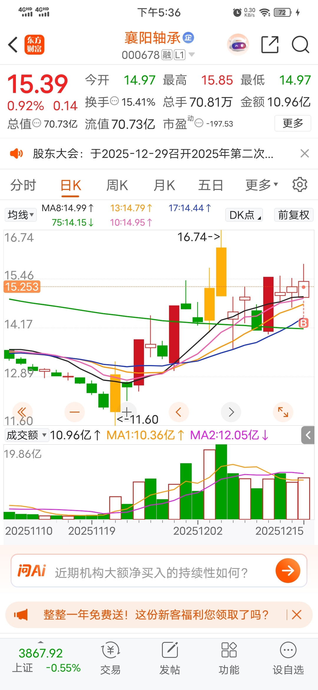 $襄阳轴承(SZ000678)$ 看了半天评论,感觉这里的韭菜都很牛的样子,所以我就满仓买入了