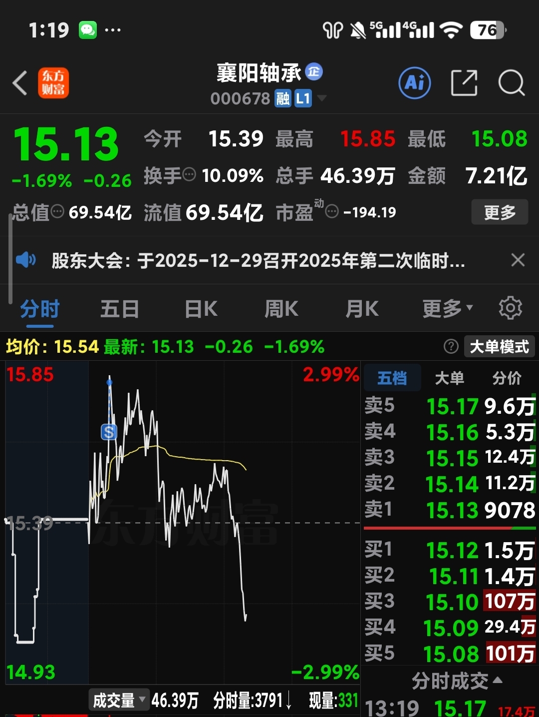 $襄阳轴承(SZ000678)$ 我还以为下午卖飞了