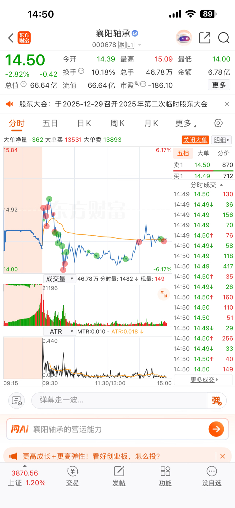 $襄阳轴承(SZ000678)$ 看时间和价格