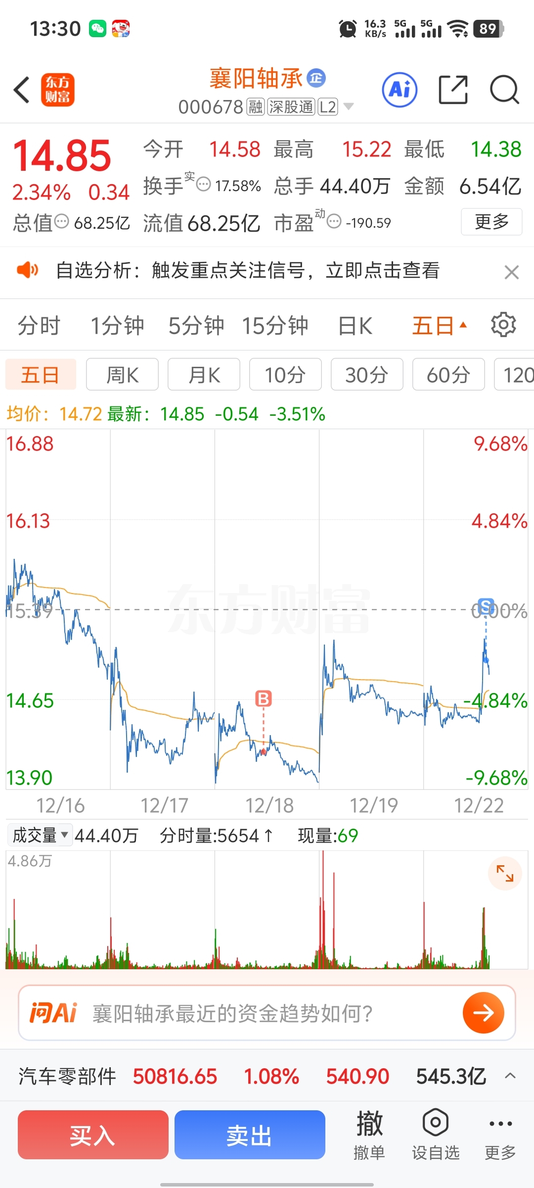 $襄阳轴承(SZ000678)$ 昨天忘记跑了,今天又给了一次机会,太感谢了