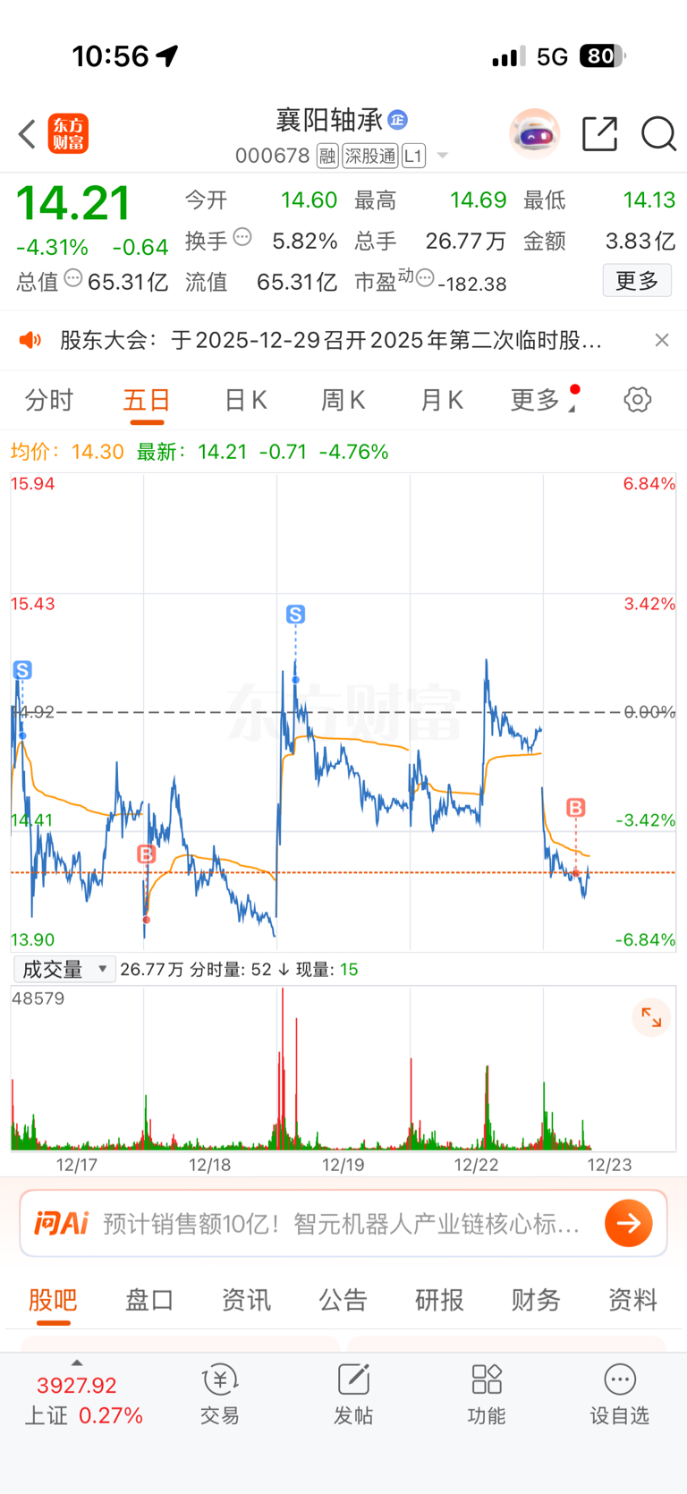 $襄阳轴承(SZ000678)$ 出去赚了10多个点,我又回来了!