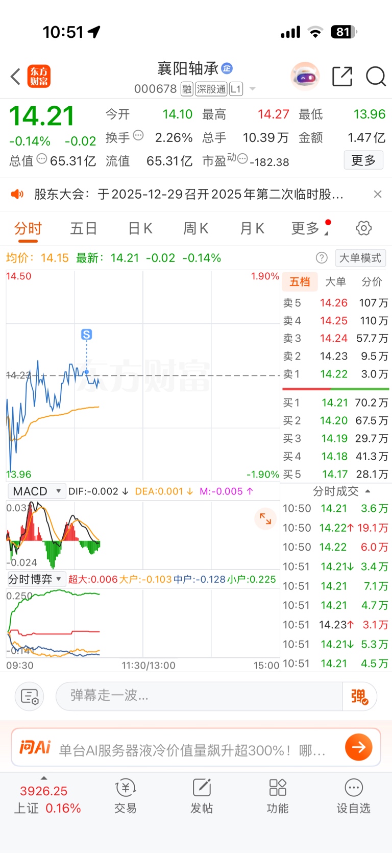 $襄阳轴承(SZ000678)$ 我走了,赚了个手续费,出去打野去了,过两天再回来看看
