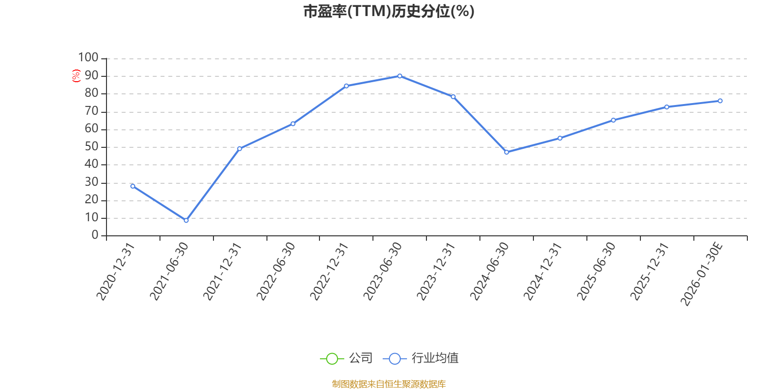 以本次披露业绩预告均值计算,公司近年市盈率(TTM)图如下所示: