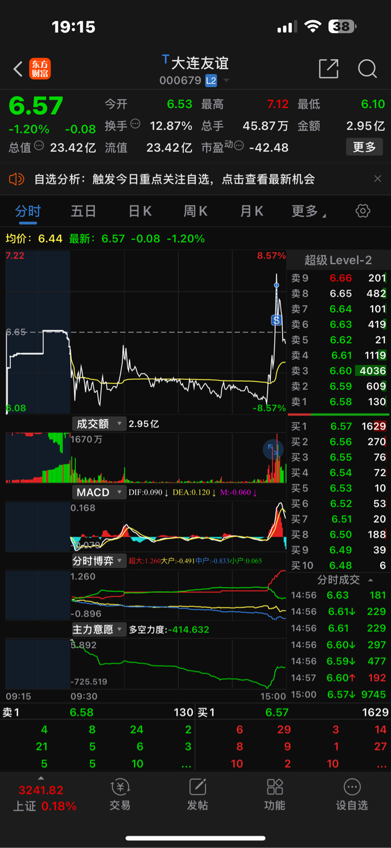 $大连友谊(SZ000679)$ 设了个条件单睡觉了。 没看了。 下午醒来看见这样了。应该t回来的