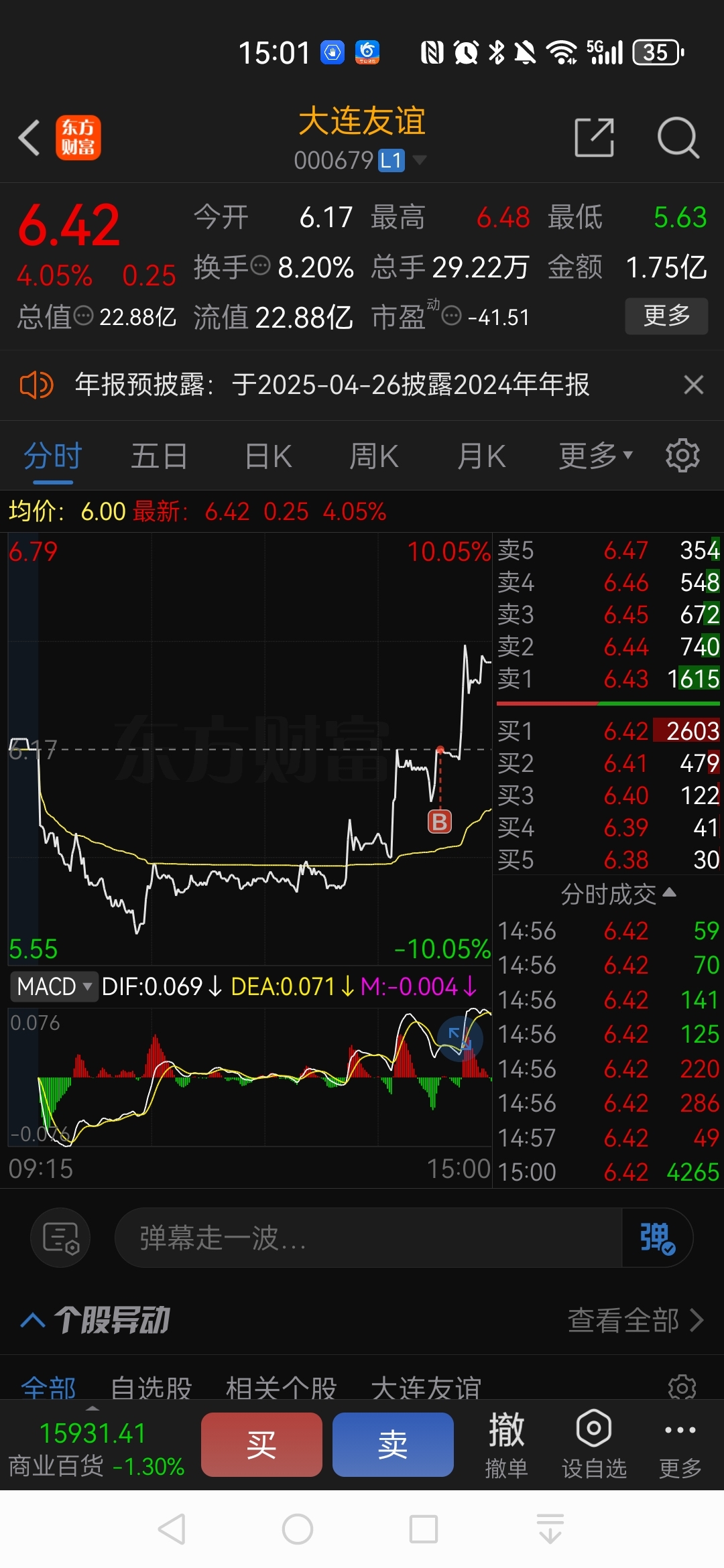 $大连友谊(SZ000679)$ 早上水下七八个点的时候犹犹豫豫,感觉亏大了!
