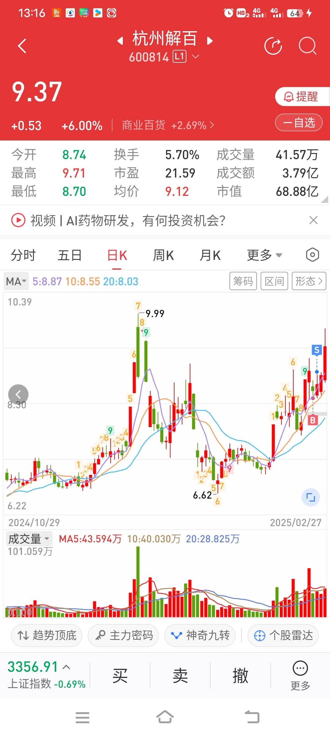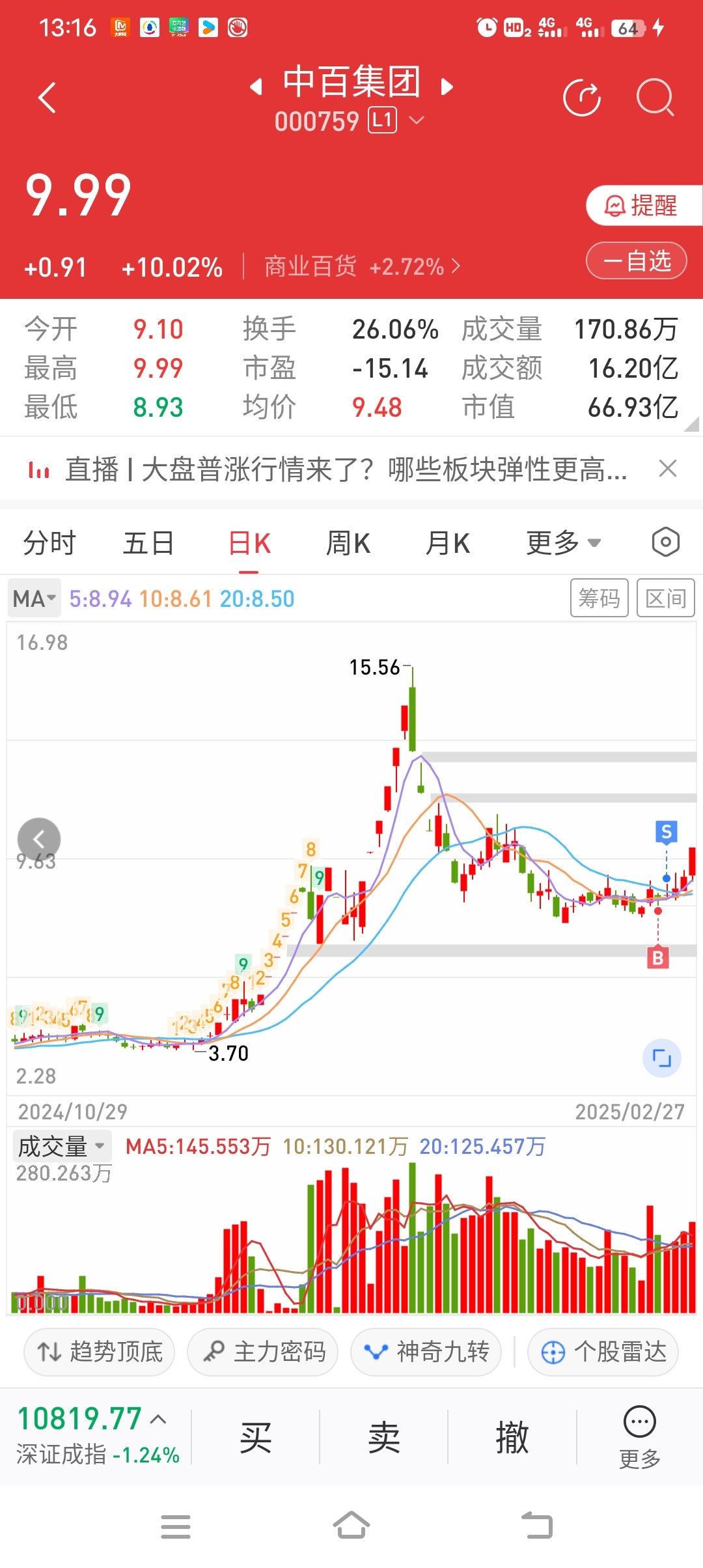 前两天想进没敢进,今天来追高了。。。中百解百拿了两天没拿住昨天卖了
