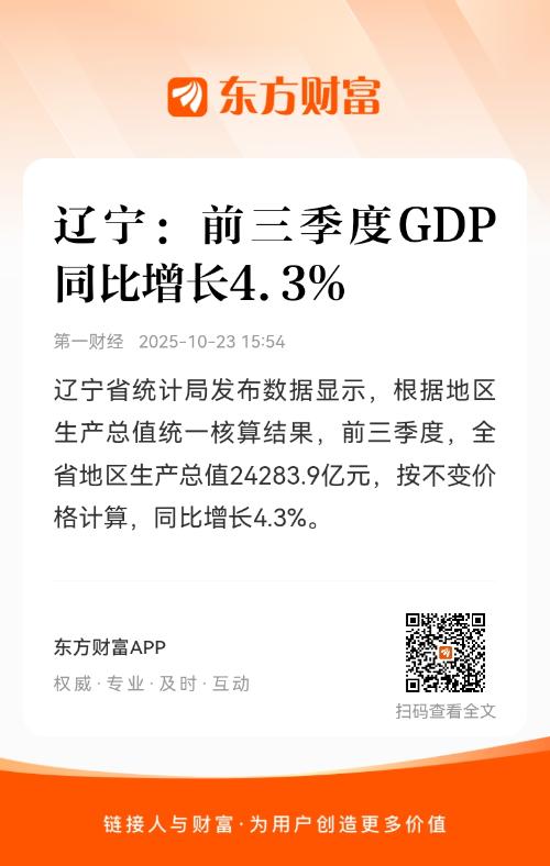 辽宁省统计局发布数据显示,根据地区生产总值统一核算结果,前三季度,全省地区生产总值24283.9亿元,按不变价格计算,同比增长4.3%。分产业看,第一产业增加值1611.5亿元,增长4.3%;第二产业增加值8367.7亿元,增长2.1%;第三产业增加值14304.7亿元,增长5.4%。