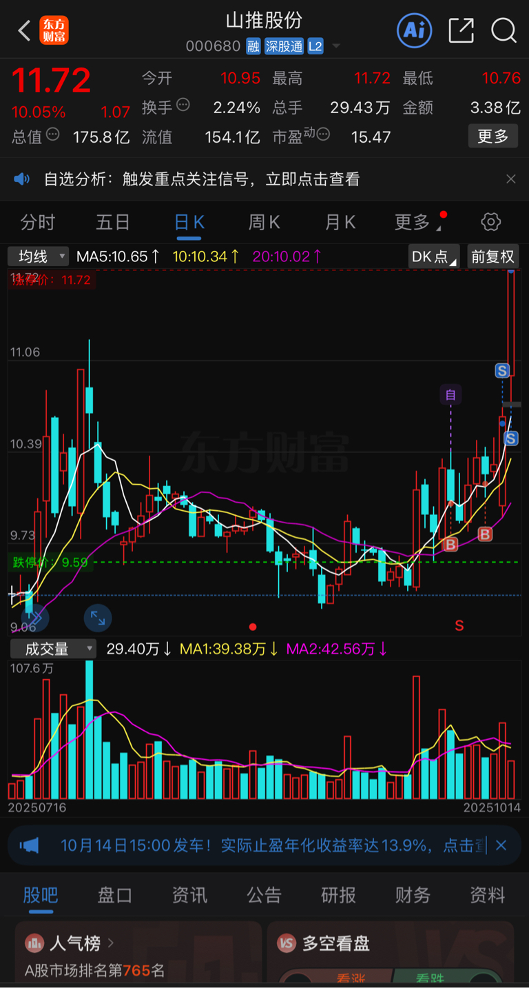 $山推股份(SZ000680)$ 谢谢山推的鼓励。 我走了~祝大家发大财!