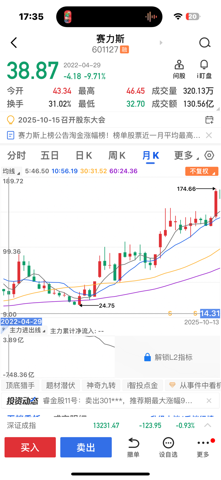 $山推股份(SZ000680)$ 赛力斯H股快上市了!看看它的走势