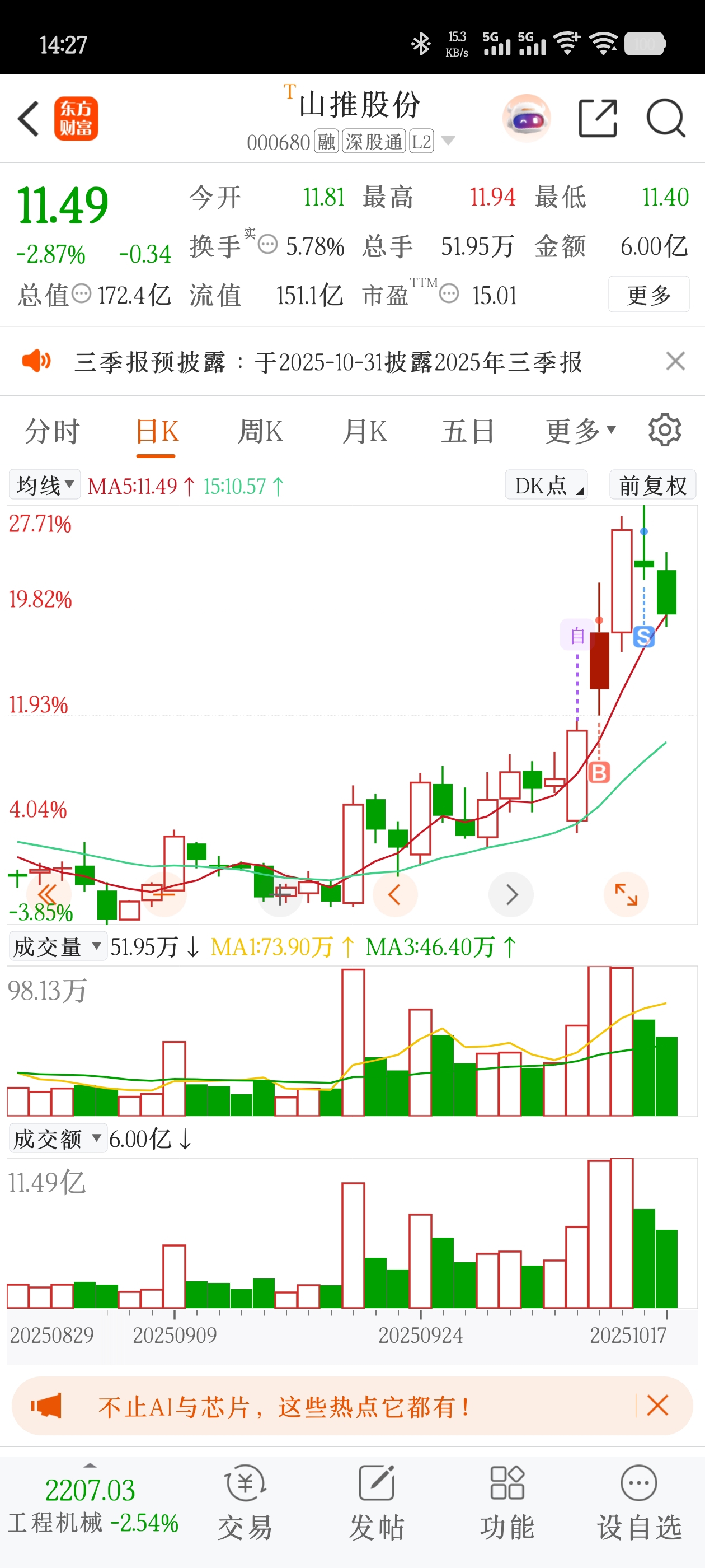 $山推股份(SZ000680)$ 这个票还没有走完,下周再买回来