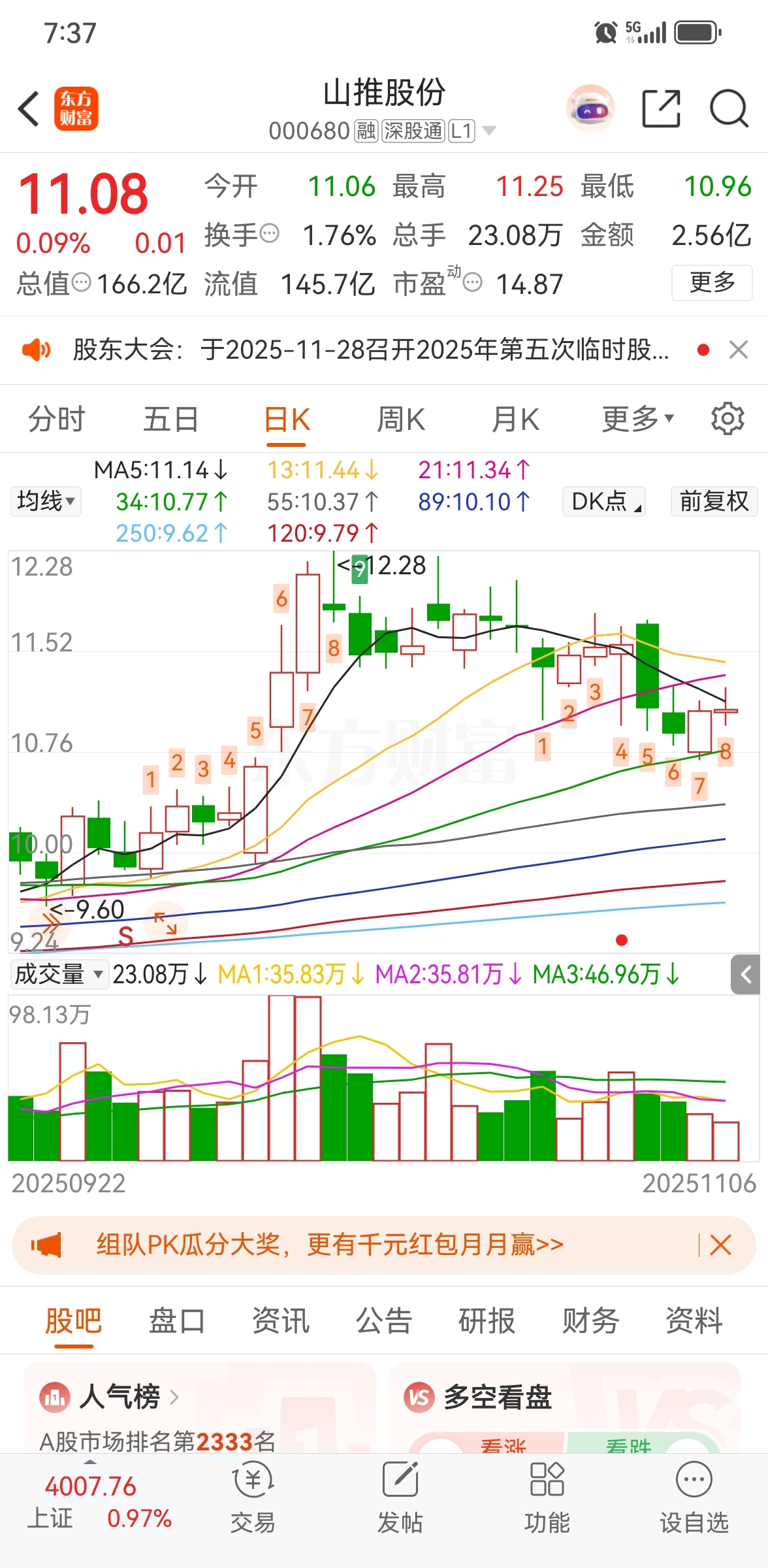 $山推股份(SZ000680)$ 反弹无力,今日继续调整,目标位10元下方,不见兔子不撒鹰,不破十元不买