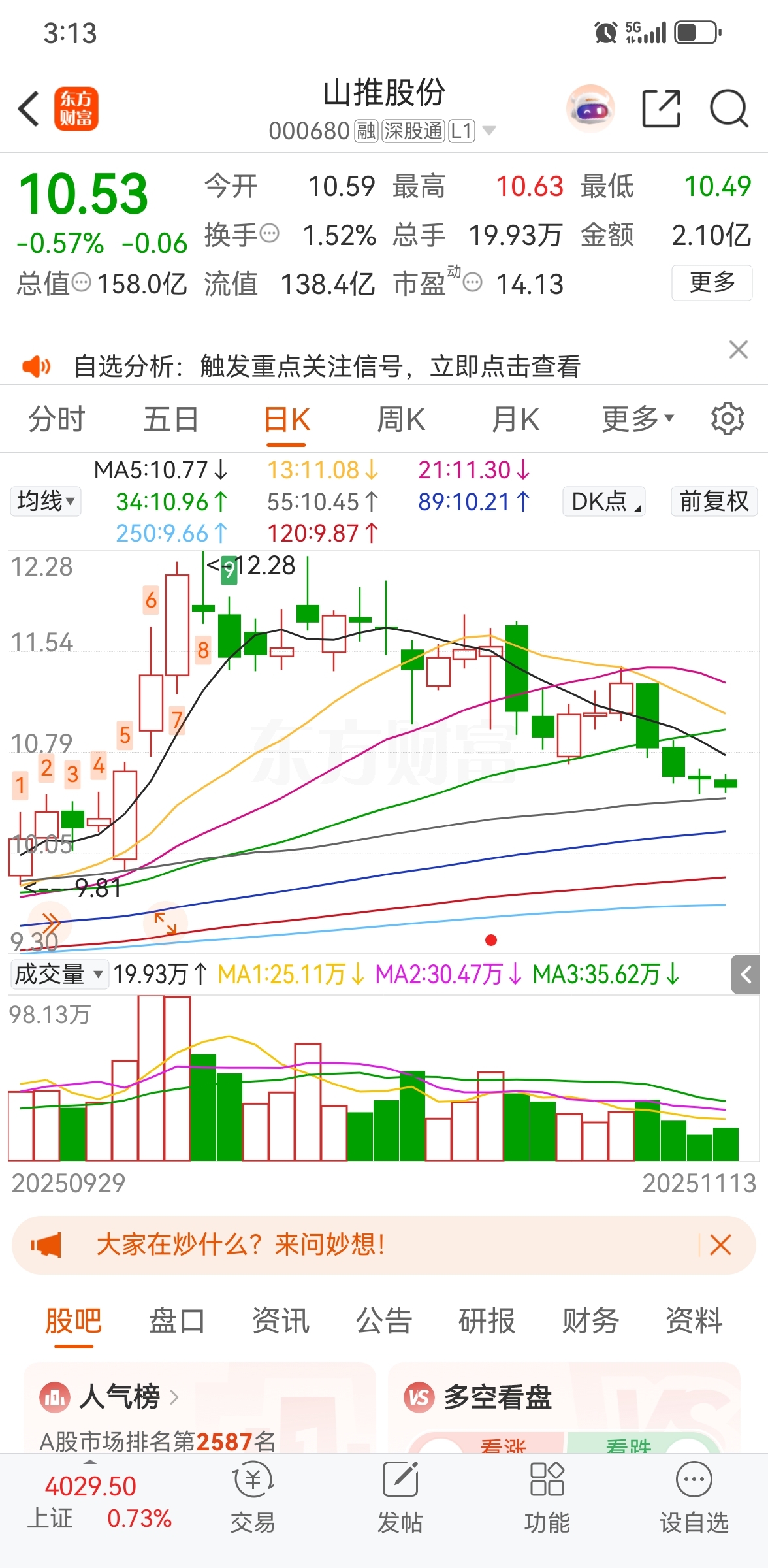 $山推股份(SZ000680)$ 这票趋势已变坏,大概率明日去触碰蓝色线,甚至击穿,不过大家不必太过担心,短线五连阴后会有修复,记得逢高跑路,不然再次下跌神仙也救不了你