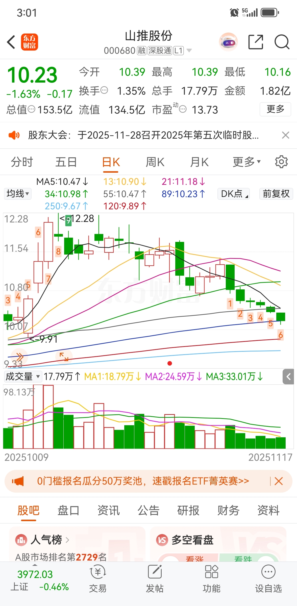 $山推股份(SZ000680)$ 今日收盘正好卡在蓝色线,接下来主力很可能要走极端,本周直接破掉下面两根均线。我说过只有击穿所有均线才会否极泰来,那么大概率明后两天主力会疯狂砸盘,让技术流割肉离场。本周四很可能收一个单针探底的中阳,所以明天开始再割肉就不太明智了,短线破10后一定有修复,我一直在试图说服自己修复就快到了
