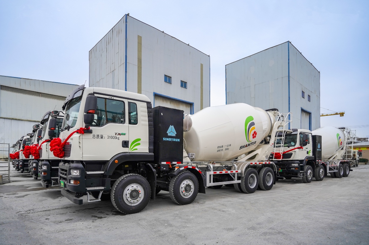 山推股份联合中国重汽举办新能源搅拌车批量交车仪式