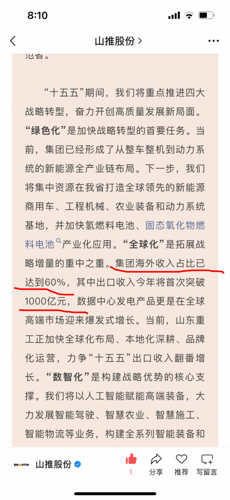 $山推股份(SZ000680)$ 厉害啦