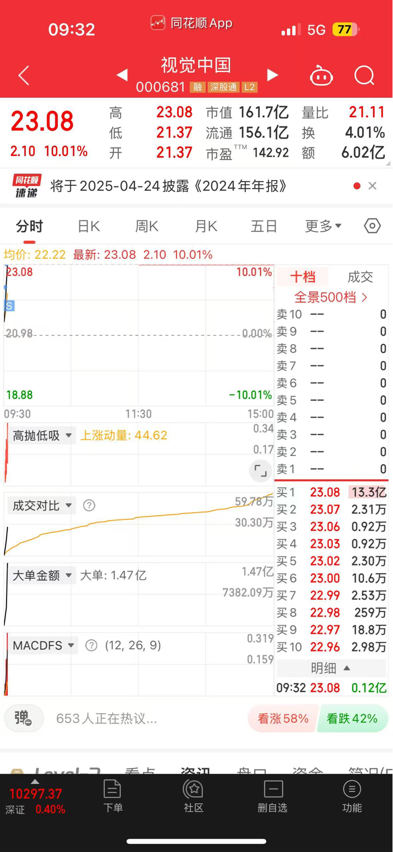 $视觉中国(SZ000681)$ 幸好早上涨停出完了