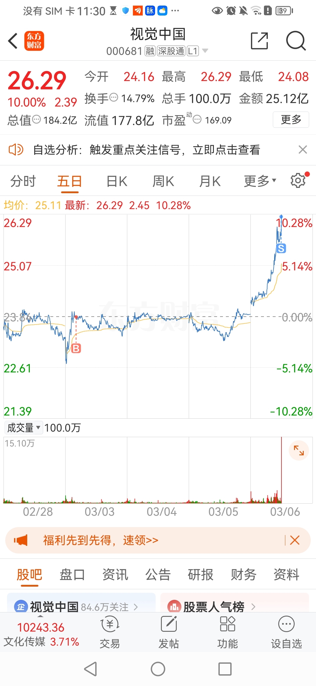 $视觉中国(SZ000681)$ 感谢主力抬轿