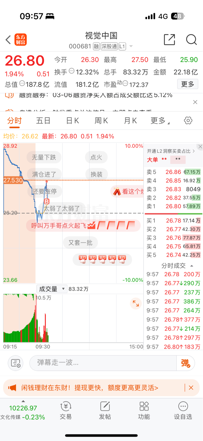 $视觉中国(SZ000681)$ 这个股只要我来,它必跳水