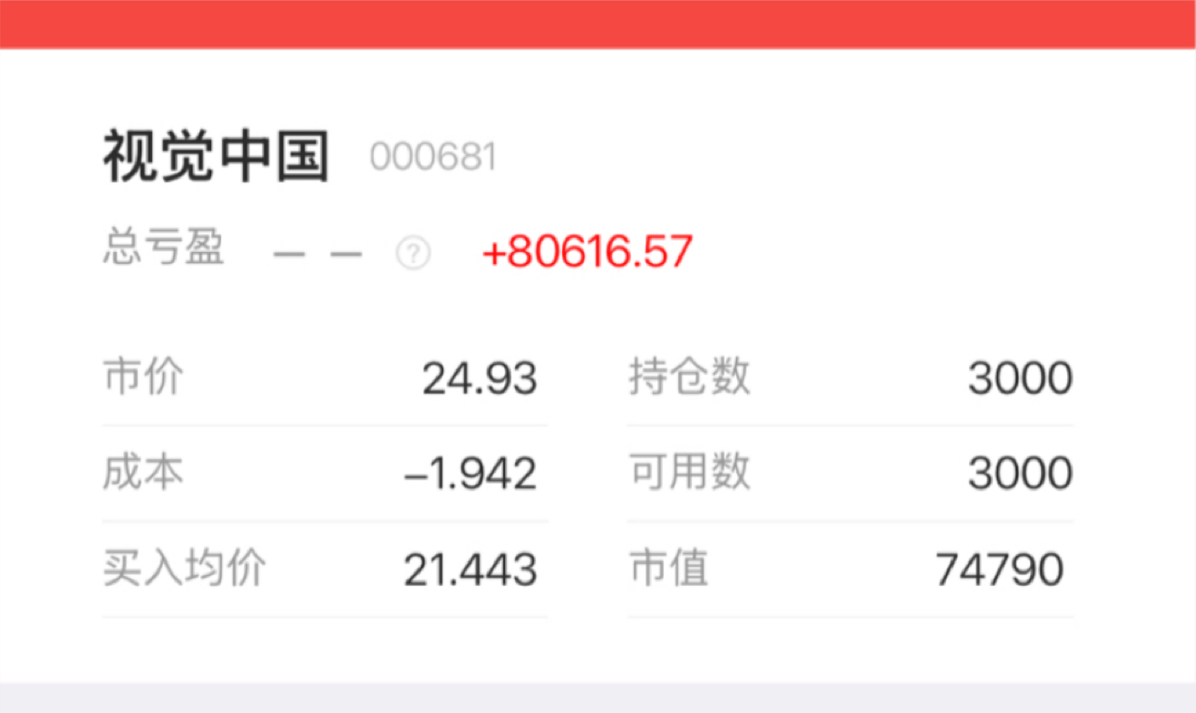 $视觉中国(SZ000681)$ 太保守了,格局不够,赚点就出了,从25800股,不到20的成本的成本,从涨停那天起一边涨一边撤,到今天剩下3000股了,重仓的继续发财。