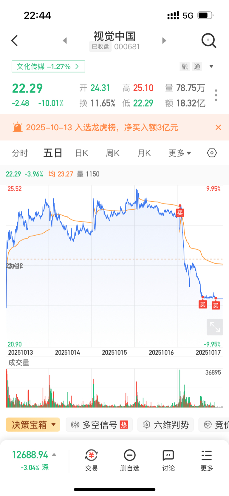 $视觉中国(SZ000681)$ 还能再买四次,下周低开再买一次子弹打完了就躺平