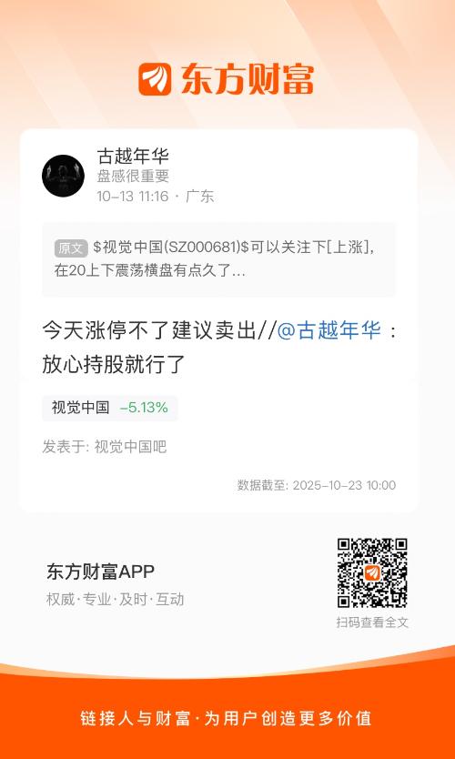 今天涨停不了建议卖出//@古越年华 : 放心持股就行了